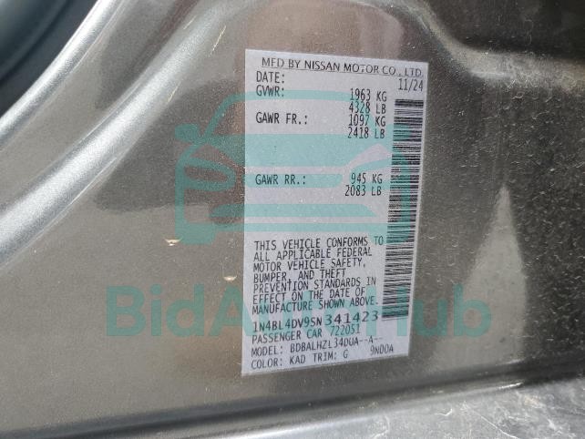 This NISSAN ALTIMA 2025 - VIN: 1N4BL4DV9SN341423 was originally purchased at one of the major insurance auctions in the United States or Canada. The vehicle history is tied directly to its VIN code, which makes it possible to track the origin, condition, and circumstances of the sale. The photographs provided represent the actual state of the car at the moment of auction and serve as an important visual record of its technical and cosmetic condition.