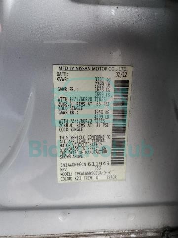 Each lot presented on our website includes comprehensive information tied to the VIN code. This allows users to cross-check vehicle data, verify the history of ownership, and confirm accident or insurance records. The NISSAN ARMADA 2012 - VIN: 5N1AA0NE6CN611949 corresponds to a car that was listed through one of the large insurance auctions in USA, which guarantees traceability and transparency of the information.