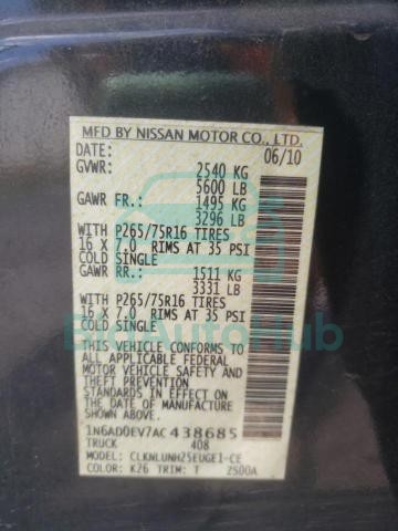 For a full understanding of the condition of this NISSAN FRONTIER 2010 - VIN: 1N6AD0EV7AC438685, it is strongly advised to analyze all available materials β both technical specifications and auction photographs. Such analysis provides the most objective picture of the carβs history, its advantages, and its potential defects.