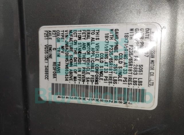 | VIN | JN8AZ08W57W663434 |