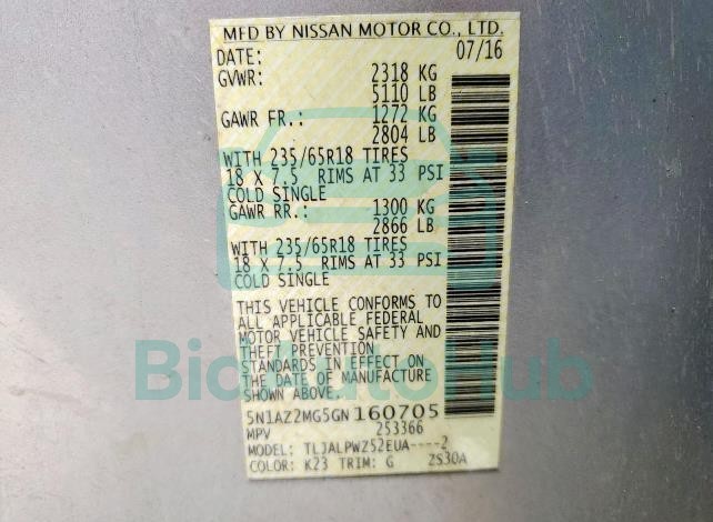 | VIN | 5N1AZ2MG5GN160705 |