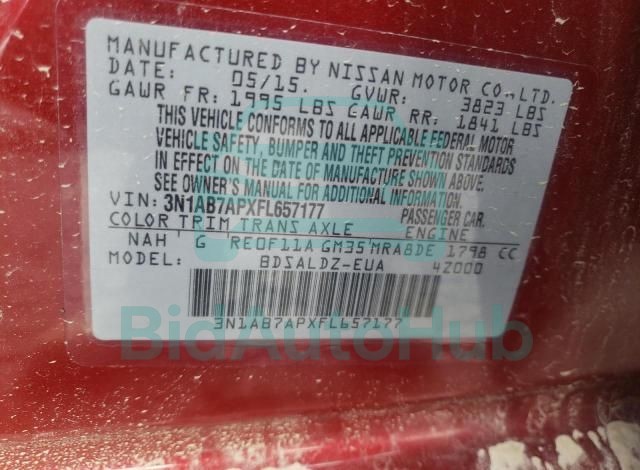 This NISSAN SENTRA 2015 - VIN: 3N1AB7APXFL657177 was originally purchased at one of the major insurance auctions in the United States or Canada. The vehicle history is tied directly to its VIN code, which makes it possible to track the origin, condition, and circumstances of the sale. The photographs provided represent the actual state of the car at the moment of auction and serve as an important visual record of its technical and cosmetic condition.
