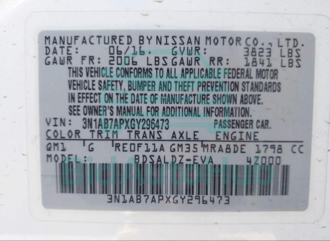 | VIN | 3N1AB7APXGY296473 |