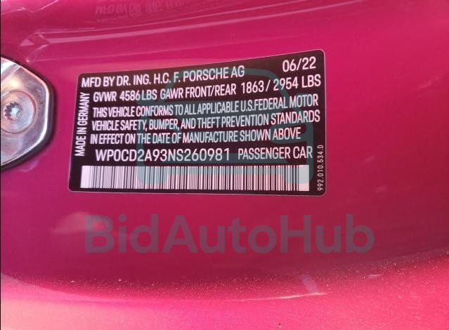 | VIN | WP0CD2A93NS260981 |