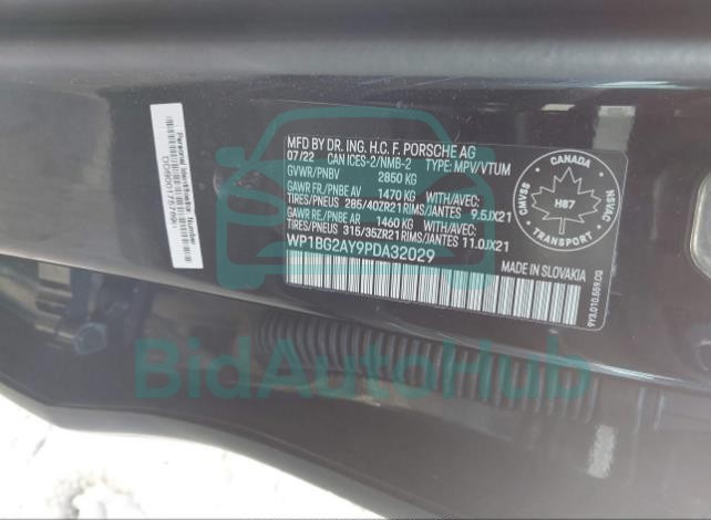 This PORSCHE CAYENNE 2023 - VIN: WP1BG2AY9PDA32029 was originally purchased at one of the major insurance auctions in the United States or Canada. The vehicle history is tied directly to its VIN code, which makes it possible to track the origin, condition, and circumstances of the sale. The photographs provided represent the actual state of the car at the moment of auction and serve as an important visual record of its technical and cosmetic condition.