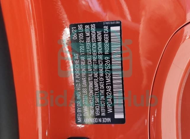 | VIN | WP0AB2A81MS275269 |