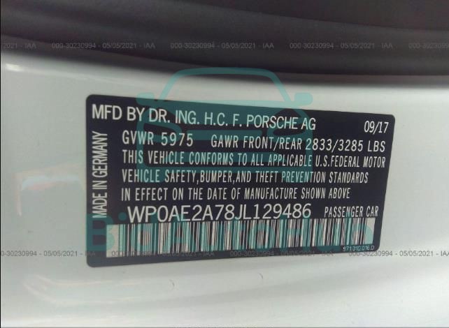| VIN | WP0AE2A78JL129486 |
