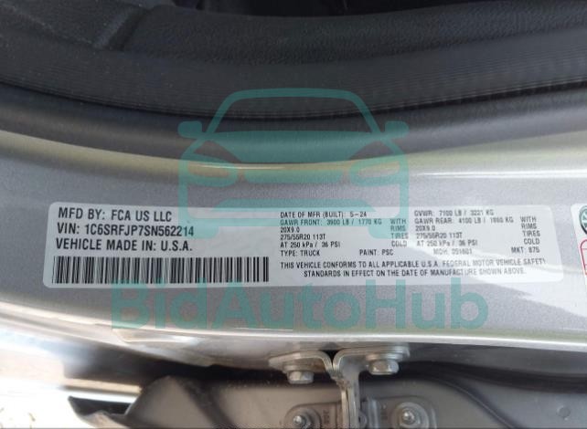 For a full understanding of the condition of this RAM 1500 2025 - VIN: 1C6SRFJP7SN562214, it is strongly advised to analyze all available materials β both technical specifications and auction photographs. Such analysis provides the most objective picture of the carβs history, its advantages, and its potential defects.