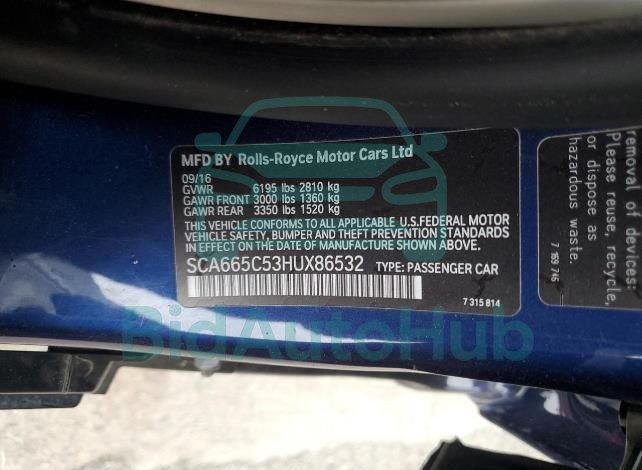 This ROLLS-ROYCE WRAITH 2017 - VIN: SCA665C53HUX86532 was originally purchased at one of the major insurance auctions in the United States or Canada. The vehicle history is tied directly to its VIN code, which makes it possible to track the origin, condition, and circumstances of the sale. The photographs provided represent the actual state of the car at the moment of auction and serve as an important visual record of its technical and cosmetic condition.