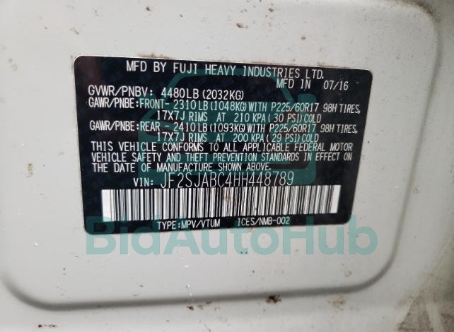| VIN | JF2SJABC4HH448789 |