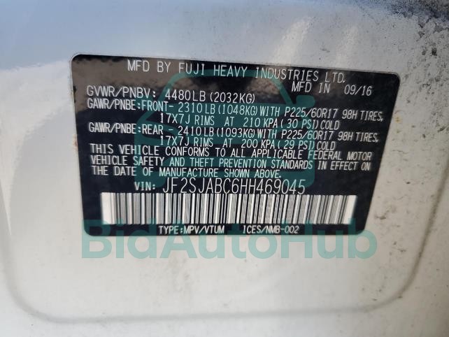 | VIN | JF2SJABC6HH469045 |