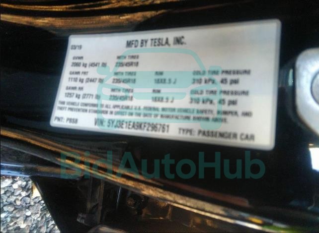 | VIN | 5YJ3E1EA9KF296761 |