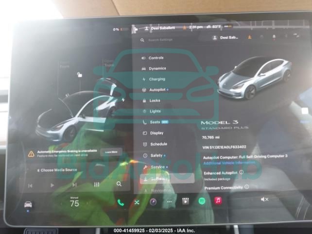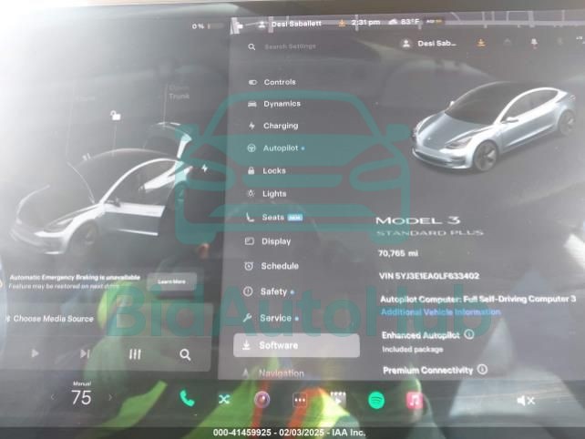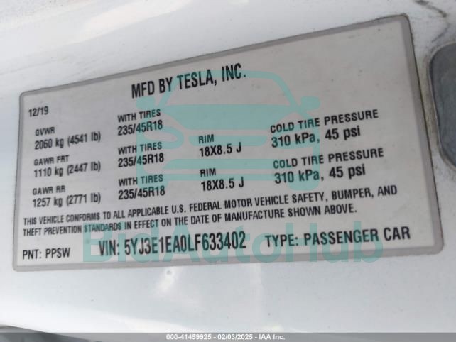 | VIN | 5YJ3E1EA0LF633402 |
