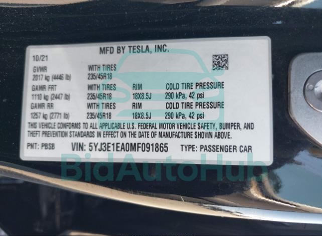 | VIN | 5YJ3E1EA0MF091865 |