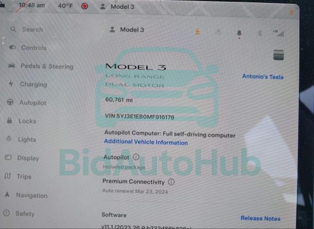 The TESLA MODEL 3 2021 - VIN: 5YJ3E1EB0MF916179 is equipped with a u u ux engine. This power unit is known for its efficiency and reliability, and it is part of modern generation of engines designed to balance performance with fuel economy. According to the auction data, the vehicle was registered with only 60761 miles of mileage at the time of sale.