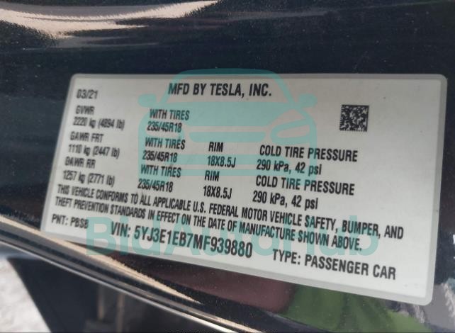 | VIN | 5YJ3E1EB7MF939880 |