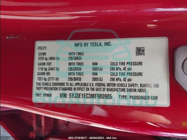 Each lot presented on our website includes comprehensive information tied to the VIN code. This allows users to cross-check vehicle data, verify the history of ownership, and confirm accident or insurance records. The TESLA MODEL 3 2021 - VIN: 5YJ3E1EC3MF980905 corresponds to a car that was listed through one of the large insurance auctions in USA, which guarantees traceability and transparency of the information.