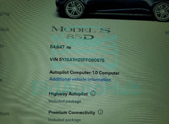 Each lot presented on our website includes comprehensive information tied to the VIN code. This allows users to cross-check vehicle data, verify the history of ownership, and confirm accident or insurance records. The TESLA MODEL S 2015 - VIN: 5YJSA1H25FF080875 corresponds to a car that was listed through one of the large insurance auctions in USA, which guarantees traceability and transparency of the information.
