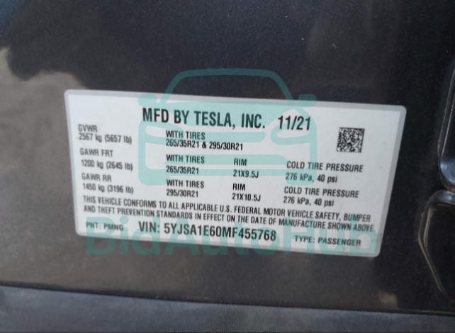 For a full understanding of the condition of this TESLA MODEL S 2021 - VIN: 5YJSA1E60MF455768, it is strongly advised to analyze all available materials β both technical specifications and auction photographs. Such analysis provides the most objective picture of the carβs history, its advantages, and its potential defects.