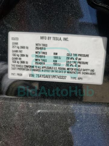 TESLA MODEL Y 2023 — VIN: 7SAYGAEE1PF743337