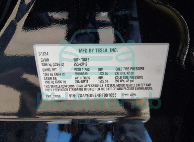 This TESLA MODEL Y 2024 - VIN: 7SAYGDEE4RF981655 was originally purchased at one of the major insurance auctions in the United States or Canada. The vehicle history is tied directly to its VIN code, which makes it possible to track the origin, condition, and circumstances of the sale. The photographs provided represent the actual state of the car at the moment of auction and serve as an important visual record of its technical and cosmetic condition.