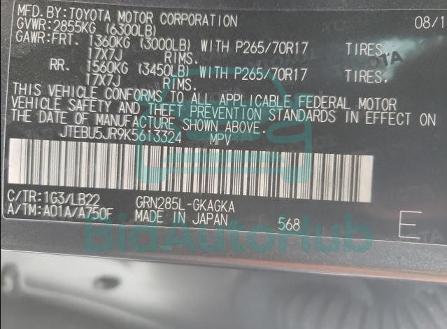 Each lot presented on our website includes comprehensive information tied to the VIN code. This allows users to cross-check vehicle data, verify the history of ownership, and confirm accident or insurance records. The TOYOTA 4RUNNER 2019 - VIN: JTEBU5JR9K5613324 corresponds to a car that was listed through one of the large insurance auctions in USA, which guarantees traceability and transparency of the information.