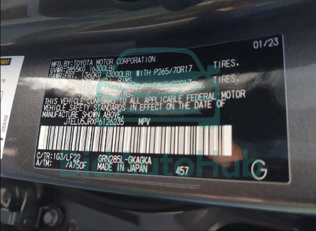 TOYOTA 4RUNNER 2023 — VIN: JTELU5JRXP6126235
