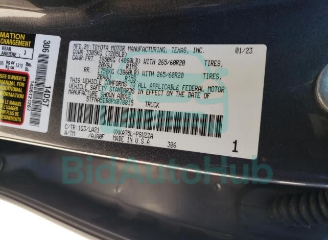 Each lot presented on our website includes comprehensive information tied to the VIN code. This allows users to cross-check vehicle data, verify the history of ownership, and confirm accident or insurance records. The TOYOTA ALL OTHER 2023 - VIN: 5TFNA5DB8PX078815 corresponds to a car that was listed through one of the large insurance auctions in USA, which guarantees traceability and transparency of the information.