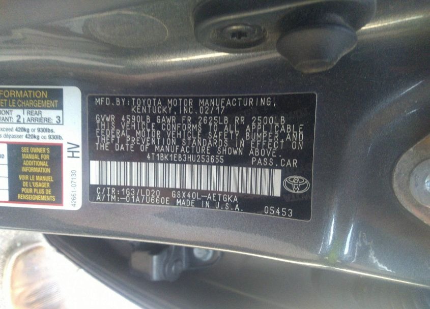 | VIN | 4T1BK1EB3HU253655 |