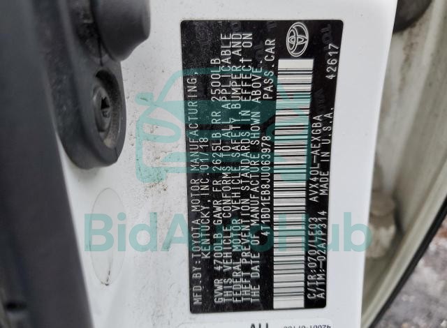 Each lot presented on our website includes comprehensive information tied to the VIN code. This allows users to cross-check vehicle data, verify the history of ownership, and confirm accident or insurance records. The TOYOTA AVALON 2018 - VIN: 4T1BD1EB8JU063978 corresponds to a car that was listed through one of the large insurance auctions in USA, which guarantees traceability and transparency of the information.