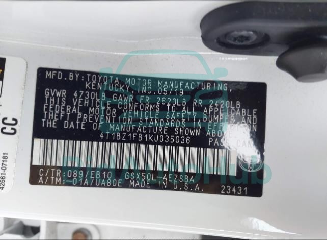 | VIN | 4T1BZ1FB1KU035036 |