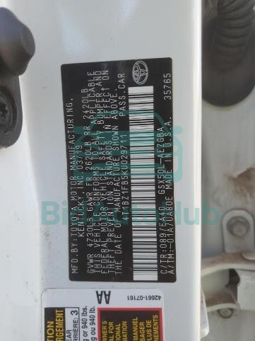 | VIN | 4T1BZ1FB5KU029711 |