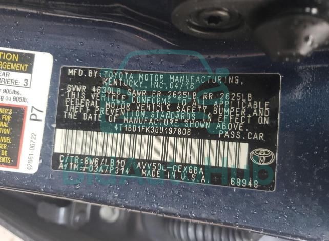 | VIN | 4T1BD1FK3GU197806 |