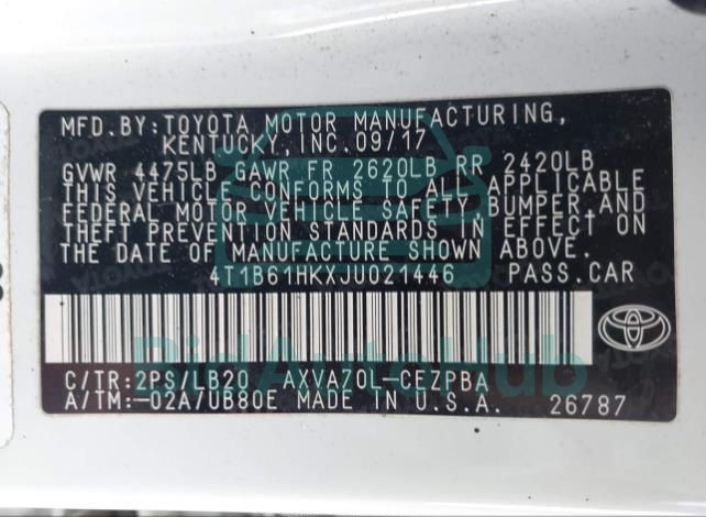 The TOYOTA CAMRY 2018 - VIN: 4T1B61HKXJU021446 is equipped with a 4T1B61HKXJU021446 engine. This power unit is known for its efficiency and reliability, and it is part of modern generation of engines designed to balance performance with fuel economy. According to the auction data, the vehicle was registered with only Automatic of mileage at the time of sale.