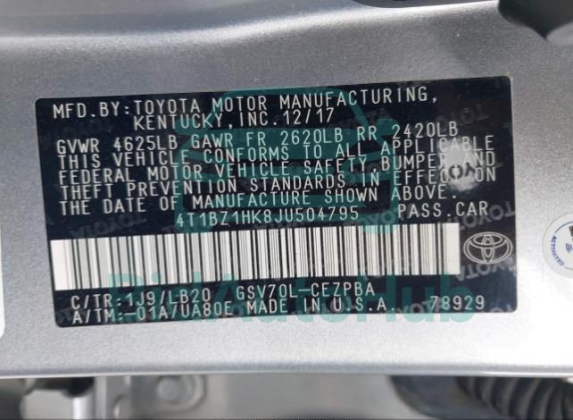 The TOYOTA CAMRY 2018 - VIN: 4T1BZ1HK8JU504795 is equipped with a 4T1BZ1HK8JU504795 engine. This power unit is known for its efficiency and reliability, and it is part of modern generation of engines designed to balance performance with fuel economy. According to the auction data, the vehicle was registered with only Automatic of mileage at the time of sale.