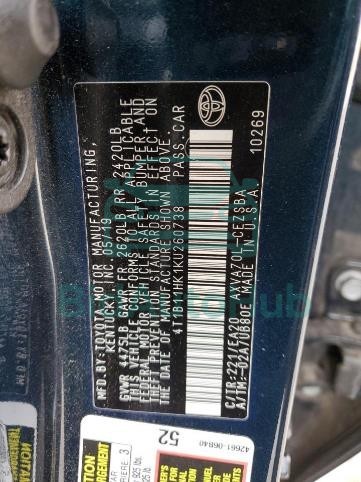 Each lot presented on our website includes comprehensive information tied to the VIN code. This allows users to cross-check vehicle data, verify the history of ownership, and confirm accident or insurance records. The TOYOTA CAMRY 2019 - VIN: 4T1B11HK1KU260738 corresponds to a car that was listed through one of the large insurance auctions in USA, which guarantees traceability and transparency of the information.
