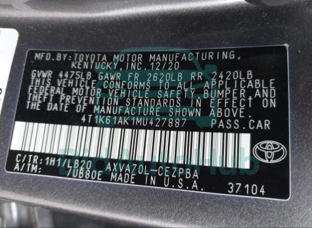 | VIN | 4T1K61AK1MU427887 |