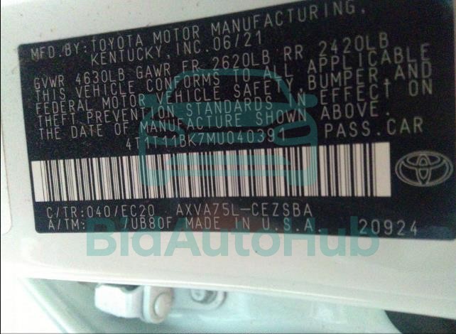 | VIN | 4T1T11BK7MU040391 |