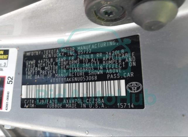 Each lot presented on our website includes comprehensive information tied to the VIN code. This allows users to cross-check vehicle data, verify the history of ownership, and confirm accident or insurance records. The TOYOTA CAMRY 2022 - VIN: 4T1T11AK6NU053068 corresponds to a car that was listed through one of the large insurance auctions in USA, which guarantees traceability and transparency of the information.
