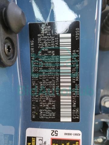 Each lot presented on our website includes comprehensive information tied to the VIN code. This allows users to cross-check vehicle data, verify the history of ownership, and confirm accident or insurance records. The TOYOTA CAMRY 2023 - VIN: 4T1G11AK0PU140985 corresponds to a car that was listed through one of the large insurance auctions in USA, which guarantees traceability and transparency of the information.