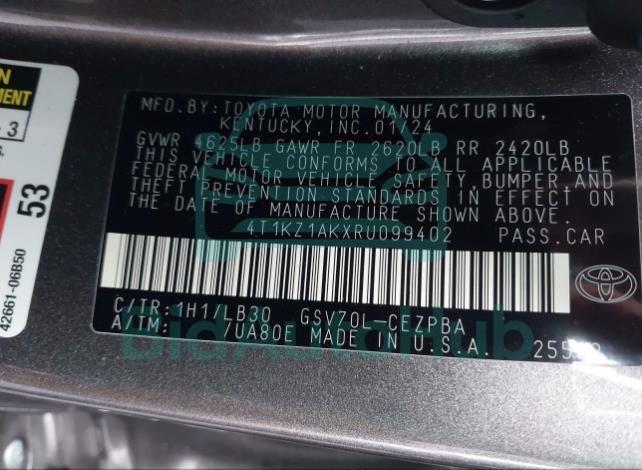This TOYOTA CAMRY 2024 - VIN: 4T1KZ1AKXRU099402 was originally purchased at one of the major insurance auctions in the United States or Canada. The vehicle history is tied directly to its VIN code, which makes it possible to track the origin, condition, and circumstances of the sale. The photographs provided represent the actual state of the car at the moment of auction and serve as an important visual record of its technical and cosmetic condition.