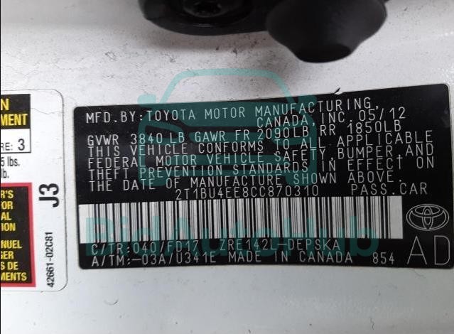 | VIN | 2T1BU4EE8CC870310 |
