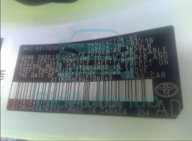| VIN | 2T1BURHE8GC706649 |