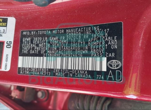 Each lot presented on our website includes comprehensive information tied to the VIN code. This allows users to cross-check vehicle data, verify the history of ownership, and confirm accident or insurance records. The TOYOTA COROLLA 2017 - VIN: 2T1BURHE7HC924616 corresponds to a car that was listed through one of the large insurance auctions in USA, which guarantees traceability and transparency of the information.