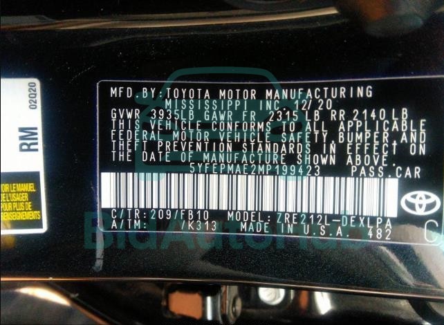 For a full understanding of the condition of this TOYOTA COROLLA 2021 - VIN: 5YFEPMAE2MP199423, it is strongly advised to analyze all available materials β both technical specifications and auction photographs. Such analysis provides the most objective picture of the carβs history, its advantages, and its potential defects.