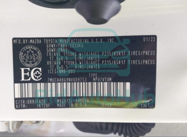 | VIN | 7MUCAABG9NV009753 |