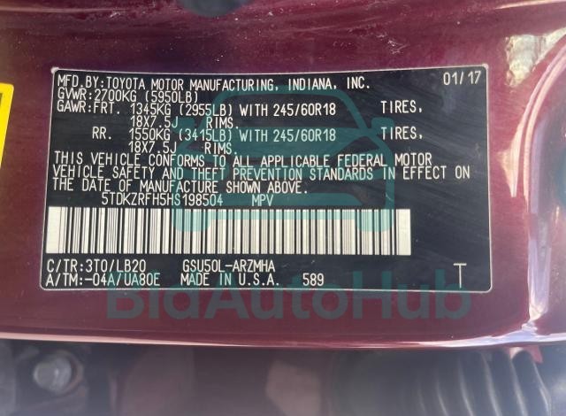 | VIN | 5TDKZRFH5HS198504 |