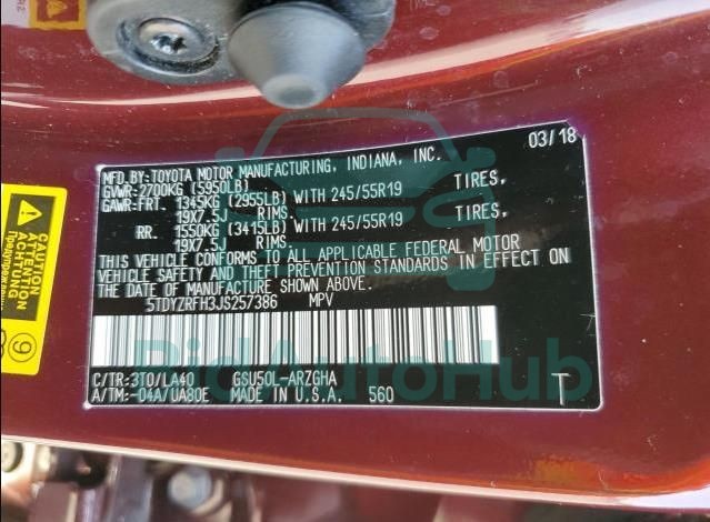 Each lot presented on our website includes comprehensive information tied to the VIN code. This allows users to cross-check vehicle data, verify the history of ownership, and confirm accident or insurance records. The TOYOTA HIGHLANDER 2018 - VIN: 5TDYZRFH3JS257386 corresponds to a car that was listed through one of the large insurance auctions in USA, which guarantees traceability and transparency of the information.