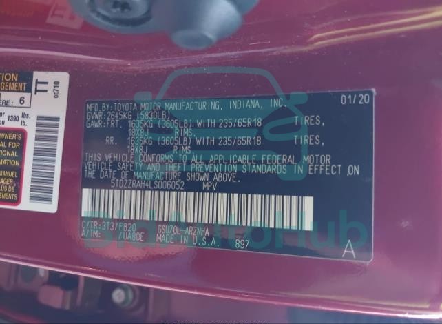 | VIN | 5TDZZRAH4LS006052 |
