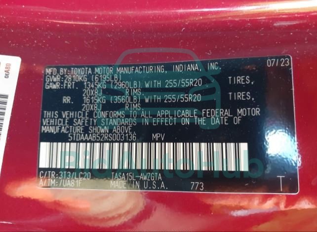 | VIN | 5TDAAAB52RS003136 |